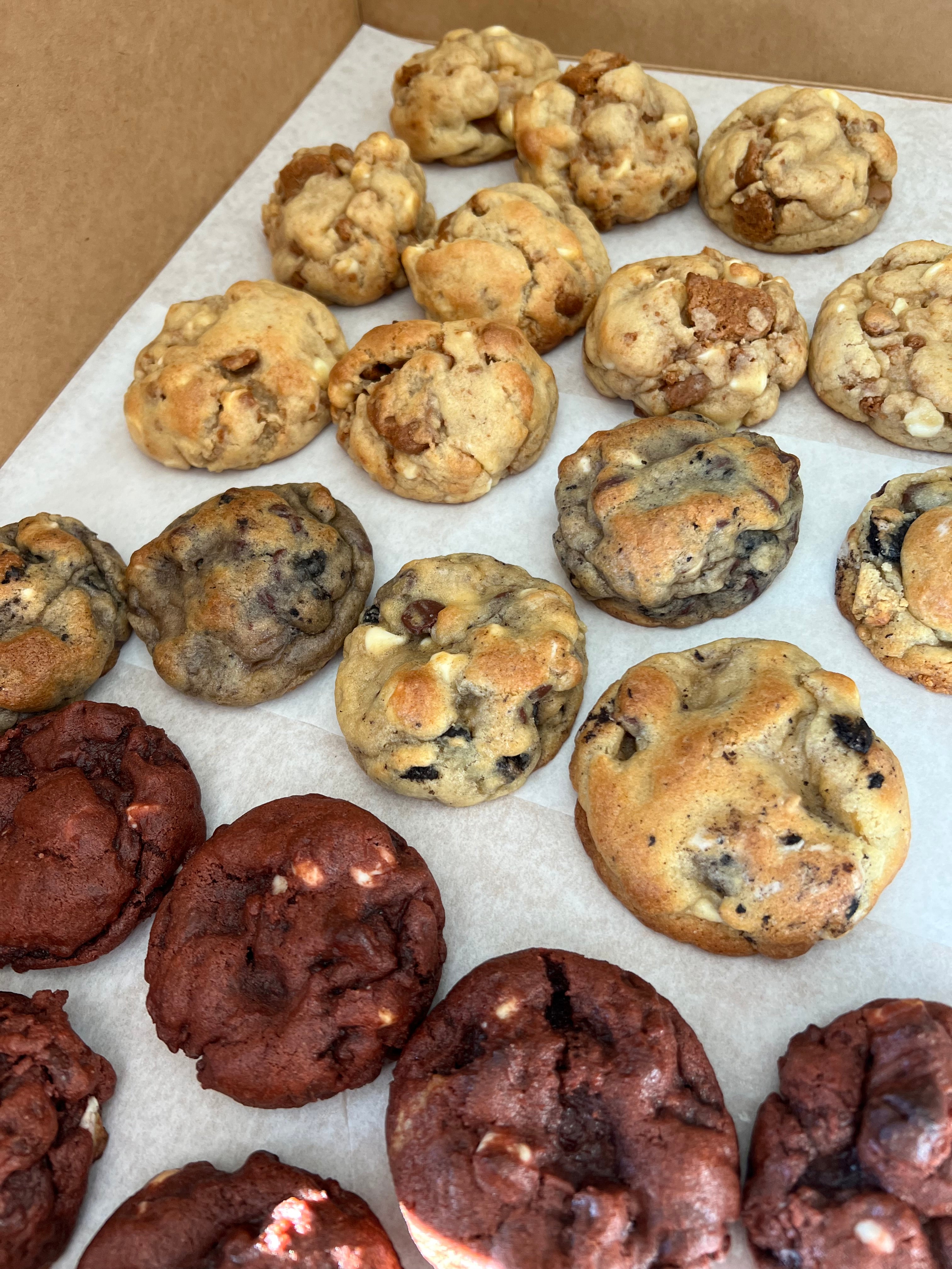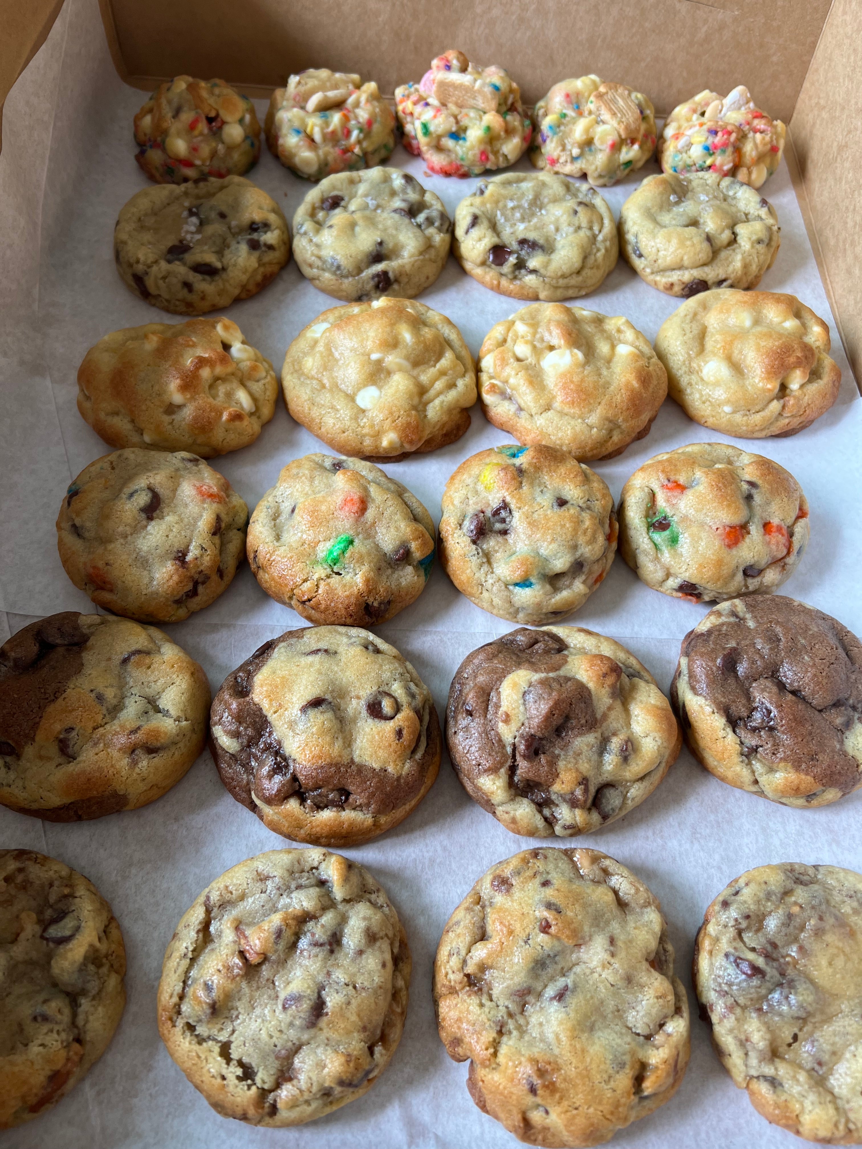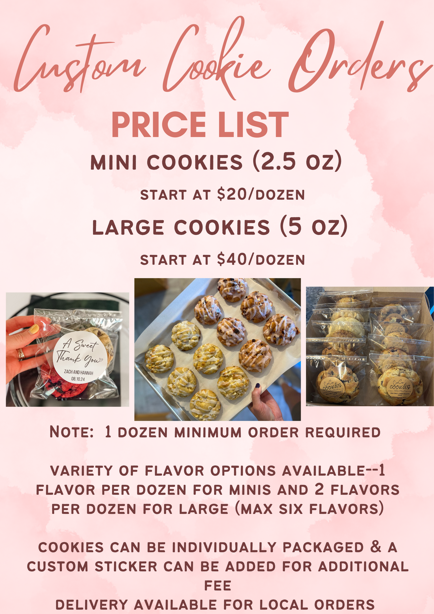 Large 5 oz or mini 2.5 oz cookies with a large variety of flavors!