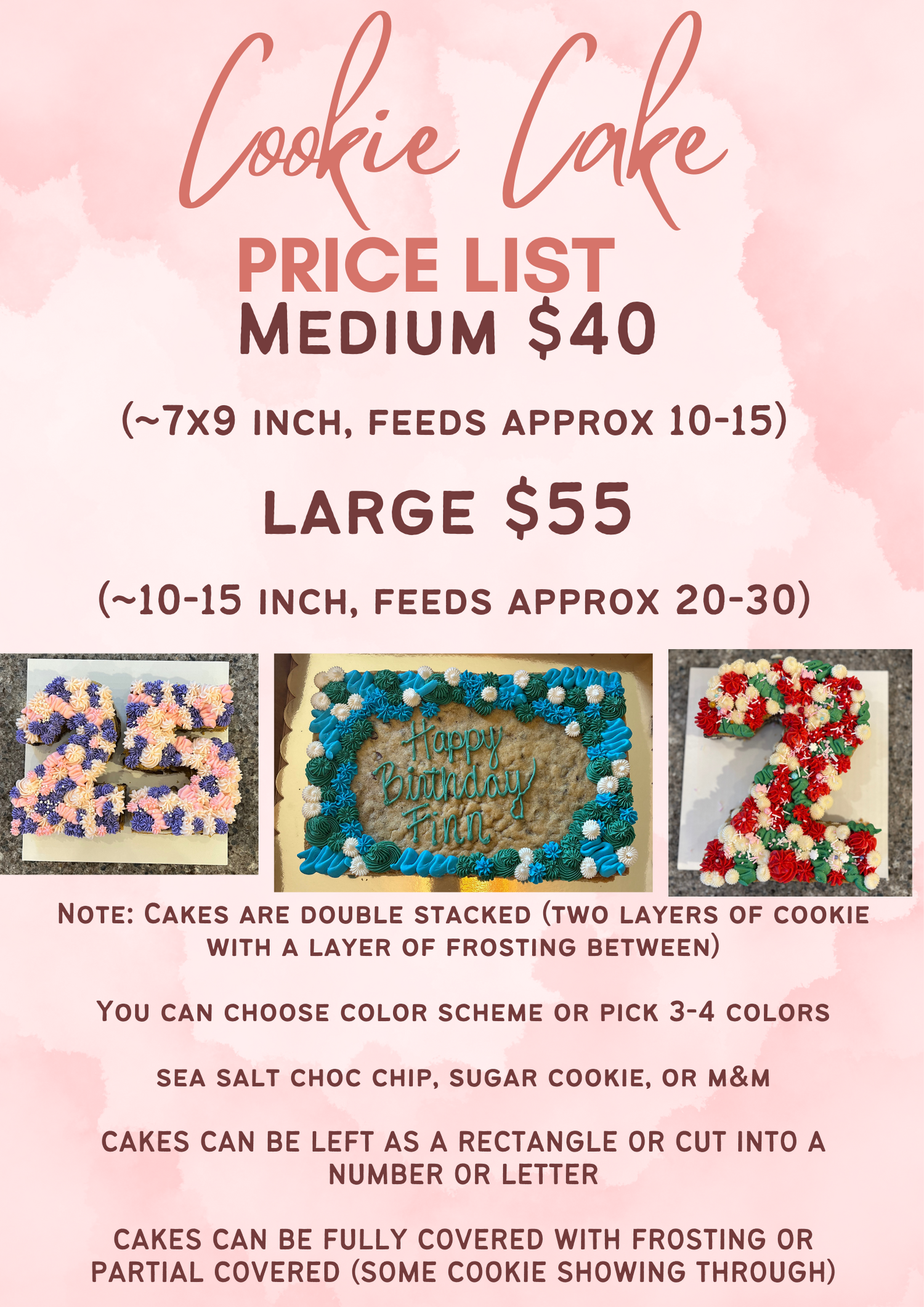 Cookie cakes are a double stacked cake with two layers of cookie with vanilla buttercream